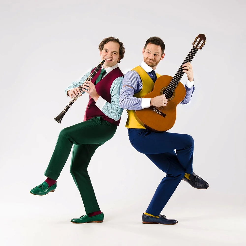 Cross vivid, folk-inspired melodies with two well-travelled jesters and you’ll find Jâca (ZHĀ-ka), a guitar and clarinet duo with exuberant energy, charm and wit. Clarinetist Wesley Ferreira and guitarist Jaxon Williams define their style as world music fused with personality, and are unafraid to experiment with that which captures their fancy – fresh takes on classics as well as composition from emerging artists. They invite you to wander with them through a program ranging from the flirtatious tangos of Piazzolla to a striking Romanian-influenced new work by Canadian composer Candace Bouchard.